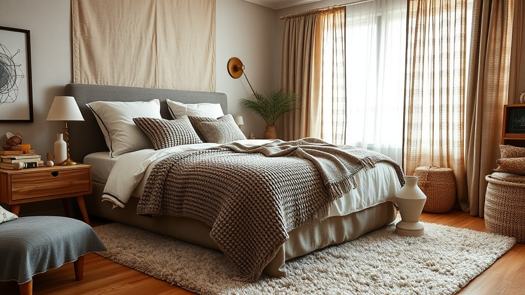 5. הוסף טקסטיל רך – שטיח ליד המיטה, כריות נוי, כיסוי מיטה